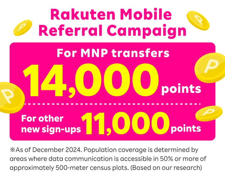 With the Rakuten Mobile Referral Campaign, you can get 14,000 points if you transfer from another carrier or 11,000 points if you are not transferring. Second line and re-subscribers (not just first-time applicants) are also eligible, and you can sign up to five lines. Rakuten SAIKYO Plan (Data Type) and Rakuten Turbo applications are also eligible.